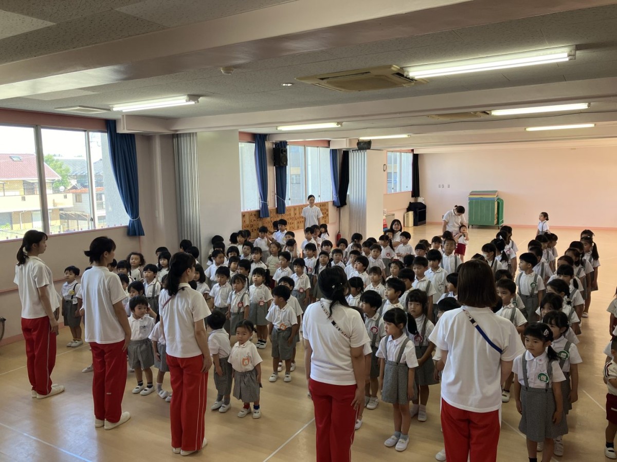 2学期からの新しいお友だちの紹介もありました!今日からは2人が仲間入りし、9月からは、さらにもう2人来てくれます♪みんなで仲良く過ごして、楽しいふくはま幼稚園生活を送ってほしいと思います。