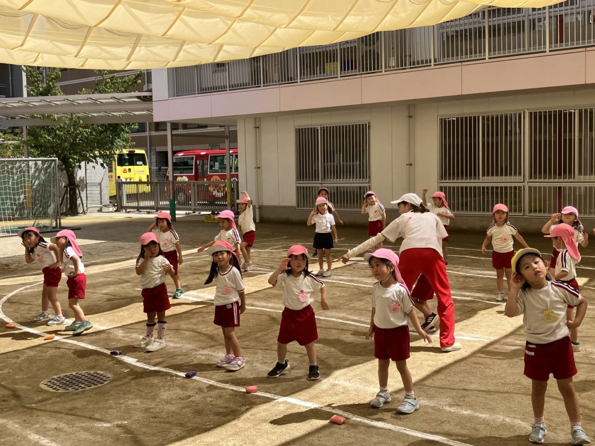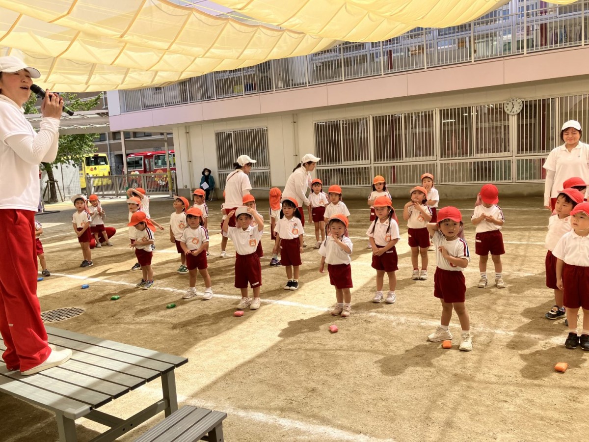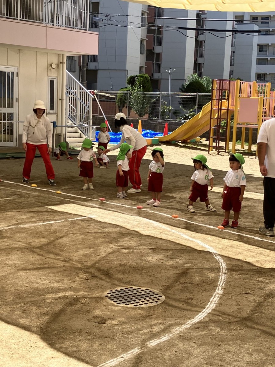 大運動会に向けての『小運動会』をおこないました!!この日は、お天気にも恵まれ、太陽もギラギラ🌞立っているだけでも汗びっしょりになる子どもたちでしたが、 開会式 ~ 一等賞体操 ~ かけっこ ~ おゆうぎ など、休憩をとりながら頑張りました💪水分補給もばっちりです✨