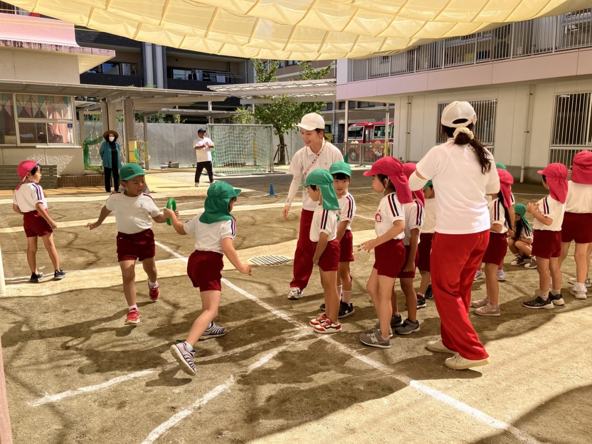 年長組のリレーは、どちらが勝つかハラハラドキドキ!!バトンゾーンを使うことも上手になってきました😊