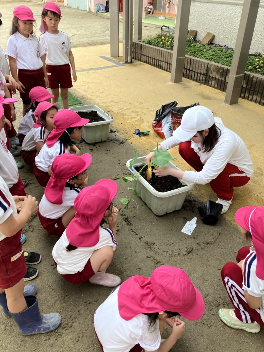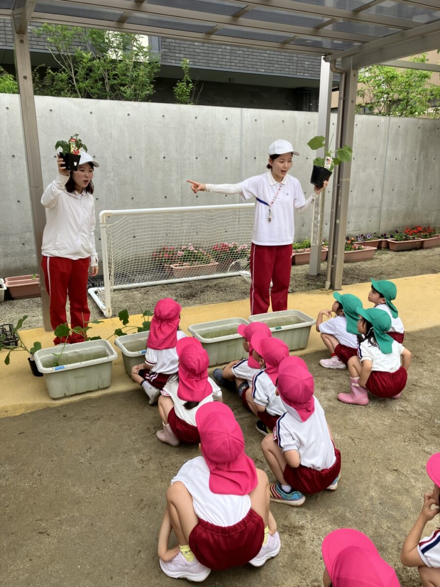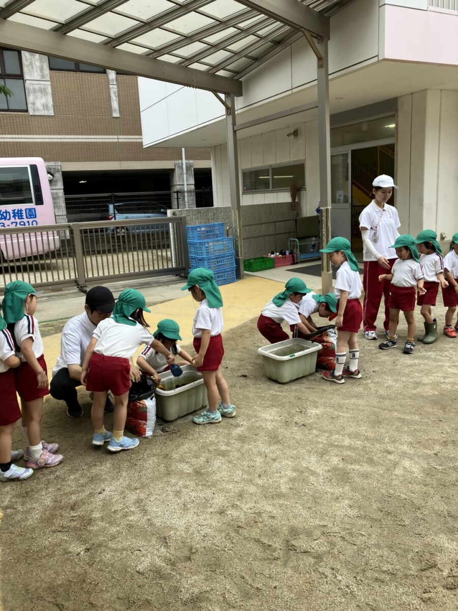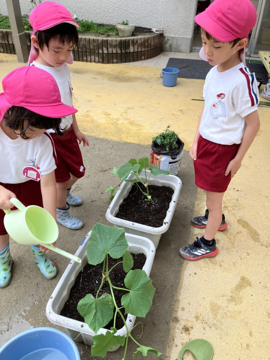 2025.06.17ふくはま幼稚園日記 🌞きゅうり🥒とまと🍅先日、年長組できゅうり・とまとの苗を植えました‼①ぼら土を入れる。②栄養たっぷりな土を入れる。③苗を植える④水やり土のお布団をかけて、たっぷりのお水と愛情を注いだ年長組さん💓最後に「おおきくな~れ!おおきくな~れ‼」とみんなで苗に言葉を掛けました😊収穫するのが楽しみです✨福岡市中央区 松栄学園 ふくはま幼稚園