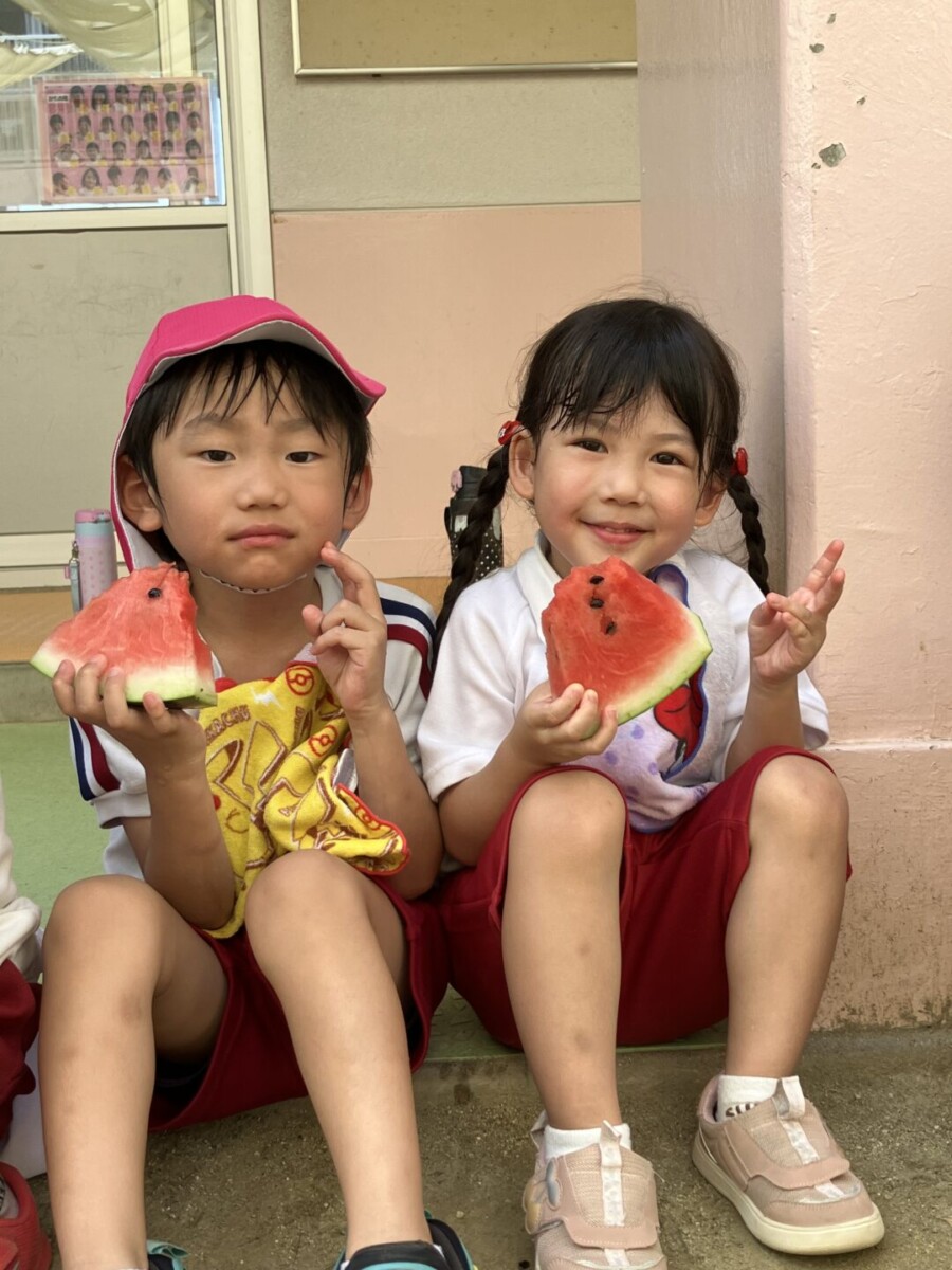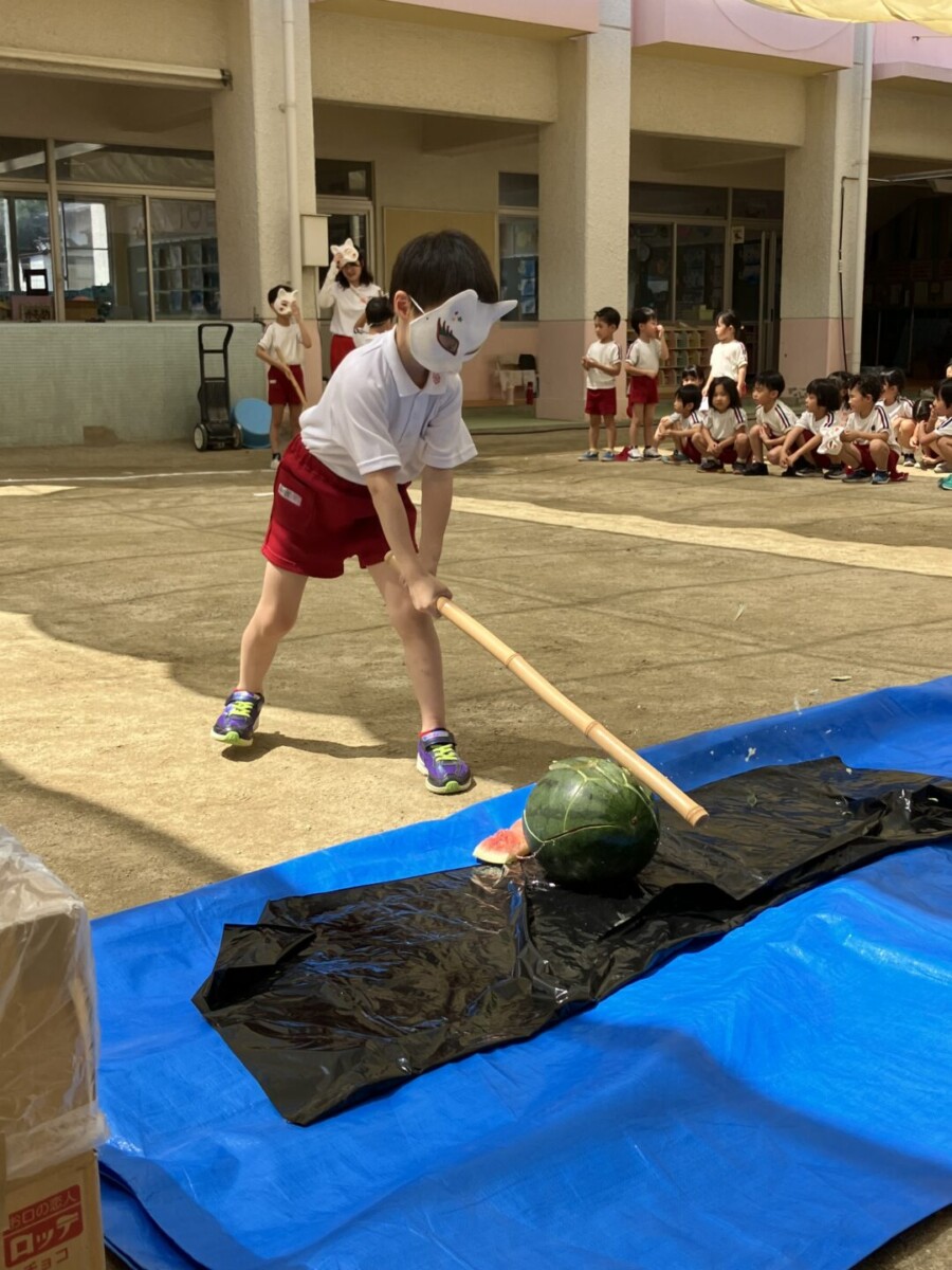 スライム作り、園内かくれんぼ、スイカ割り、しゃぼん玉ショー、理事長先生の手品、映画と楽しいこと盛りだくさん😄