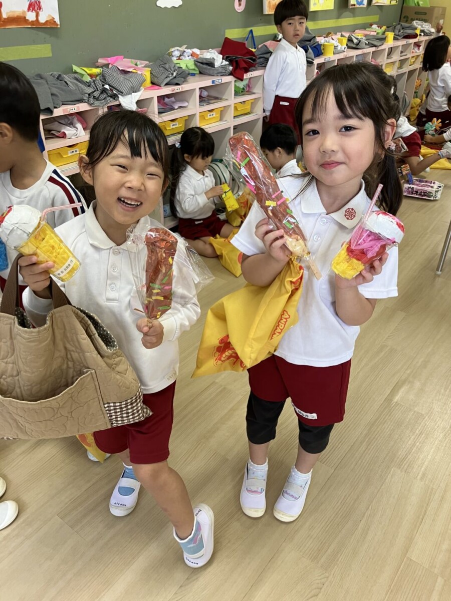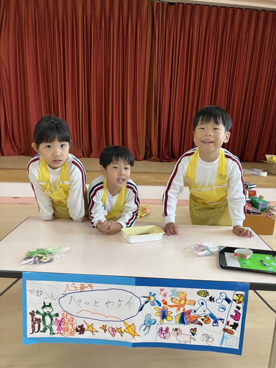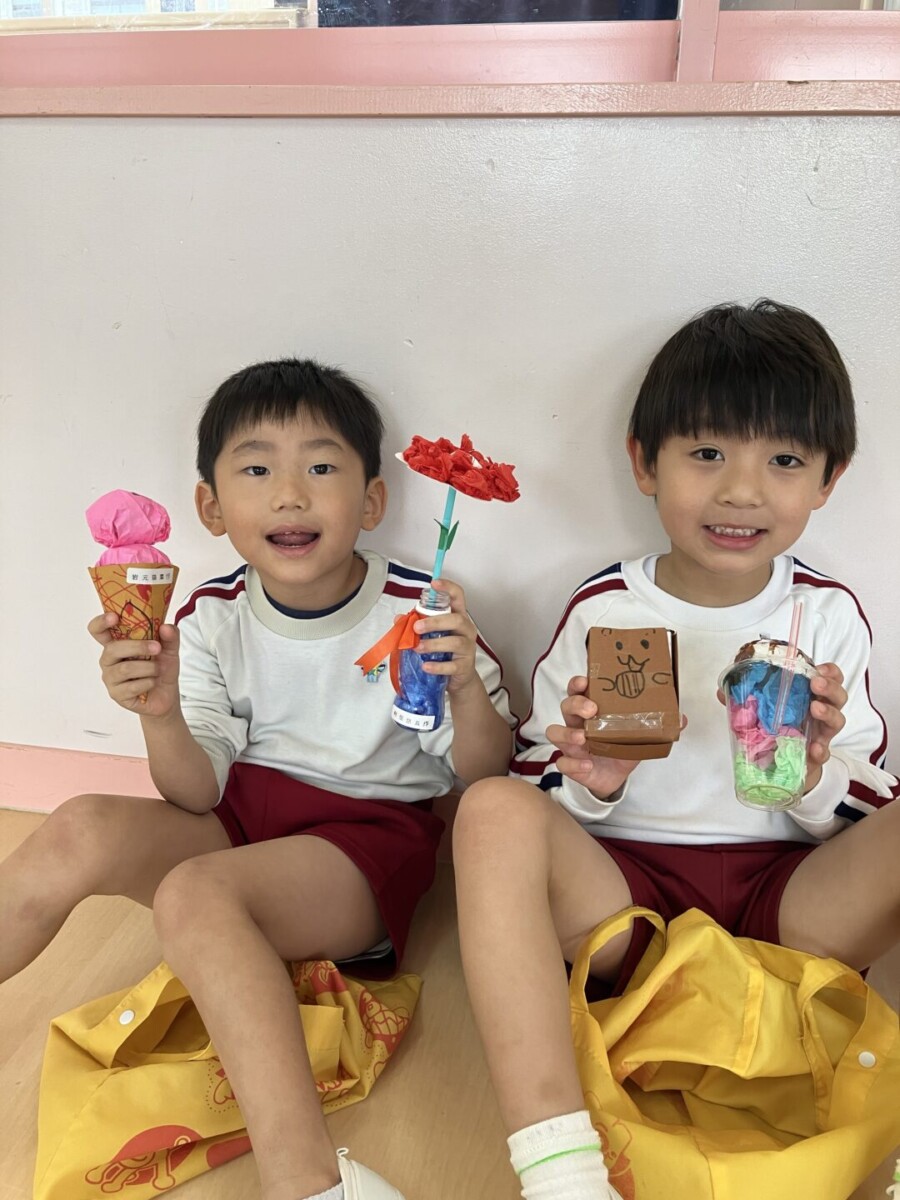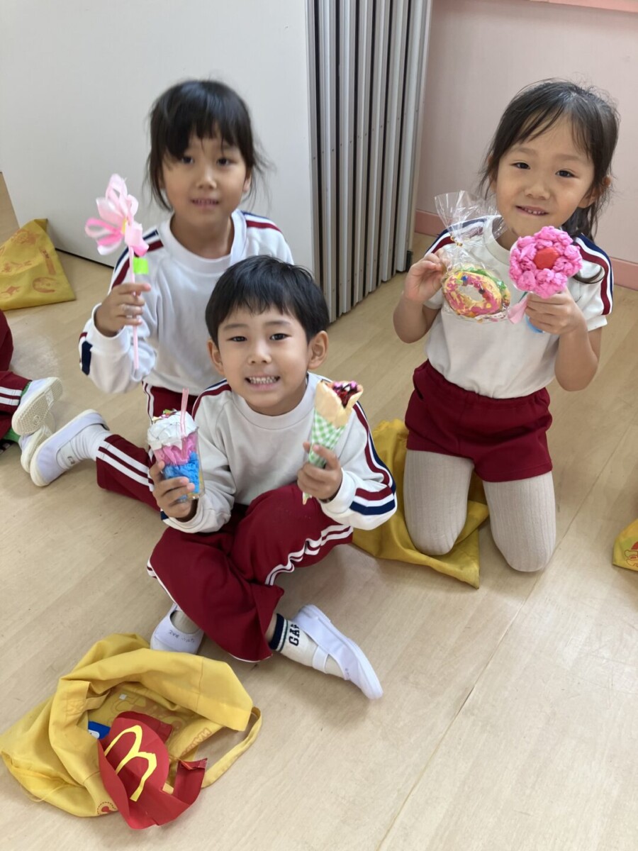年中・年少・2歳児は何屋さんをするのかをみんなで考えて、先生たちと一緒に商品を作り上げましたよ💓
