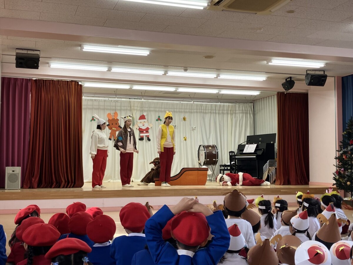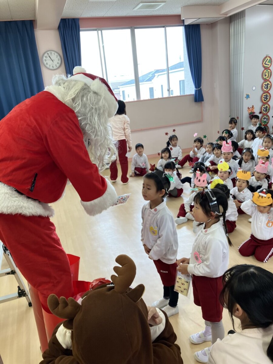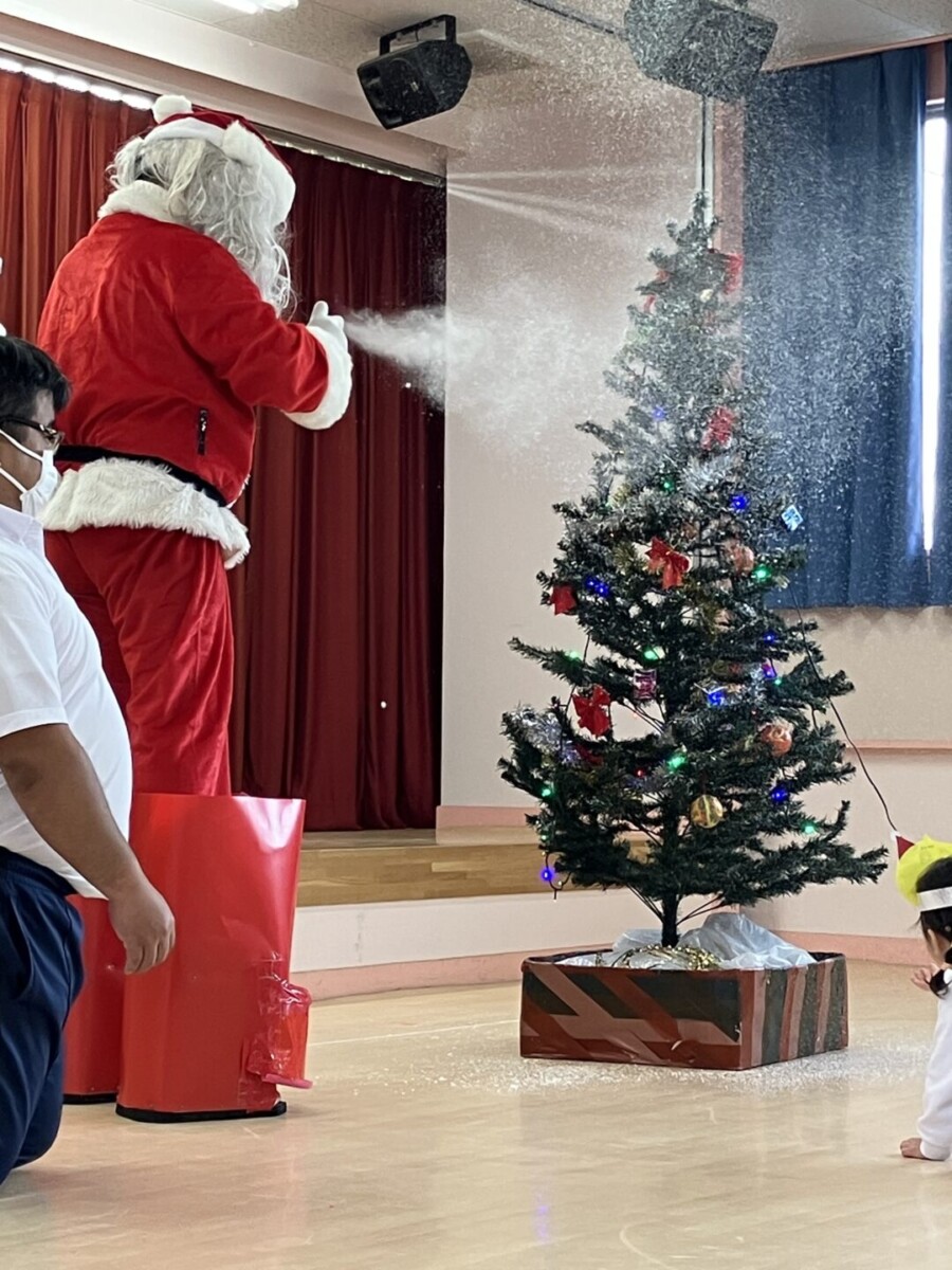 クリスマス会では、先生たちの劇をみたり、 サンタさんがプレゼントを持ってきてくれたりと子ども達は大興奮‼とっても楽しい時間になりました。