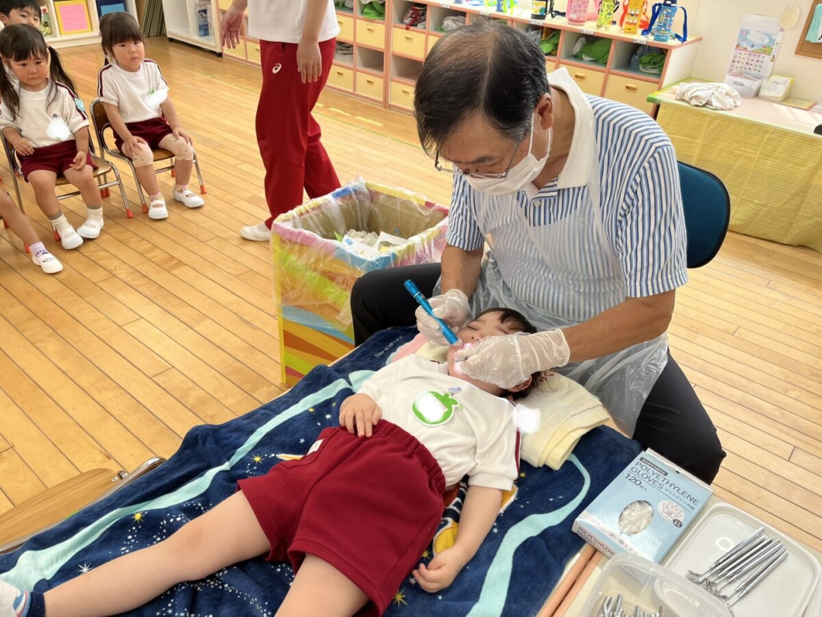 でも、そんな中、泣かずに1番に検診を受けてくれた女の子!上手にお口を先生に見せてくれて、みんなのお手本になってくれました!