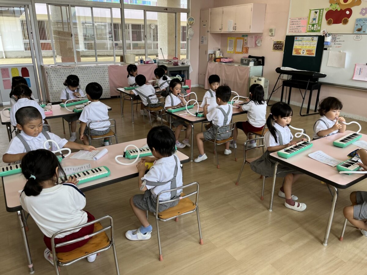 メロディオンの曲を弾く中で、うまく弾けず難しそうにしている子もいますが、コツを伝えたり、苦手な部分だけを繰り返し弾く反復練習をしたりして、合格を目指して楽しみながら頑張っています!合格したお友だちは、小さな先生になって、お友だちに教えてくれていますよ♡