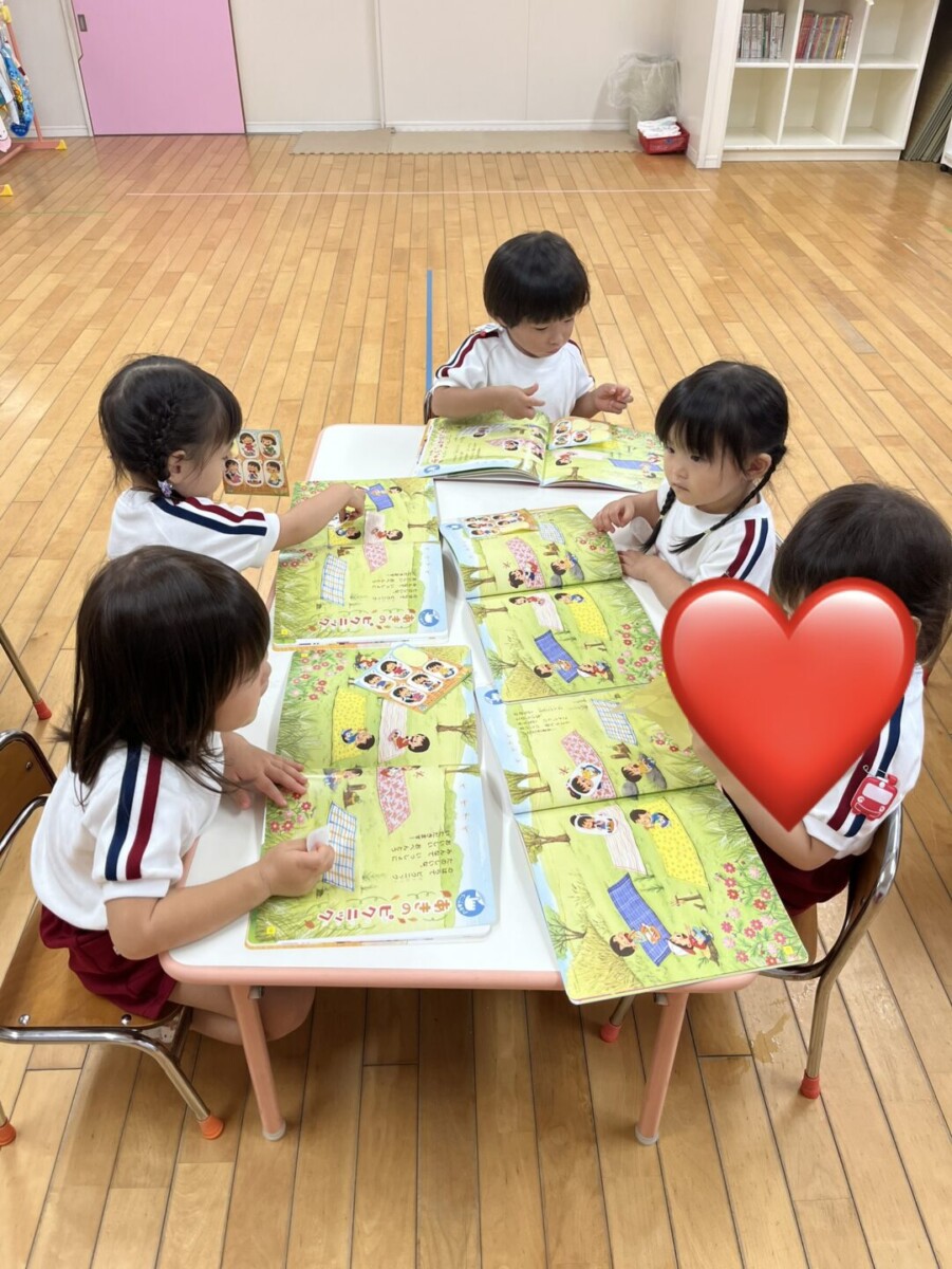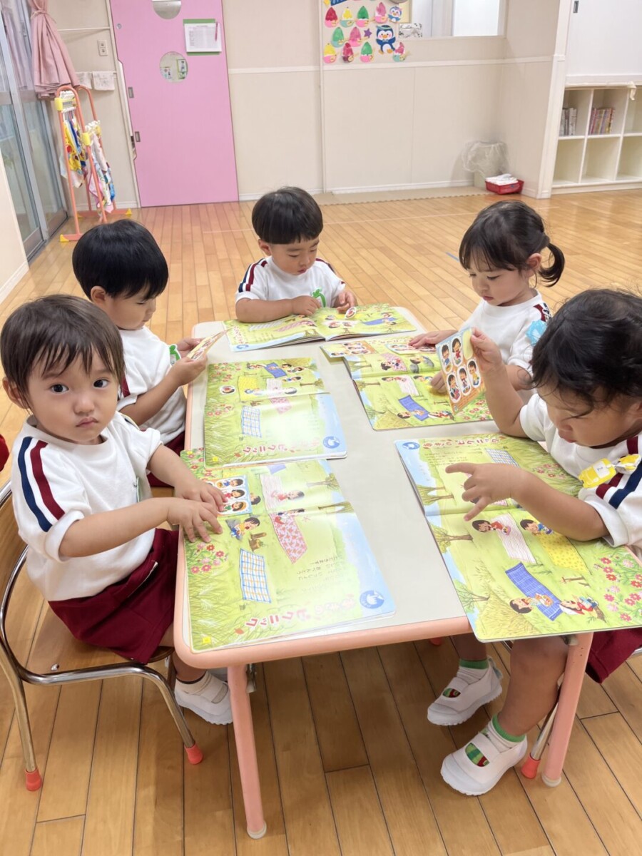 2歳児クラスでは、毎月届く月刊絵本『ぴこちゃんえほん』という絵本を読んでいます。
