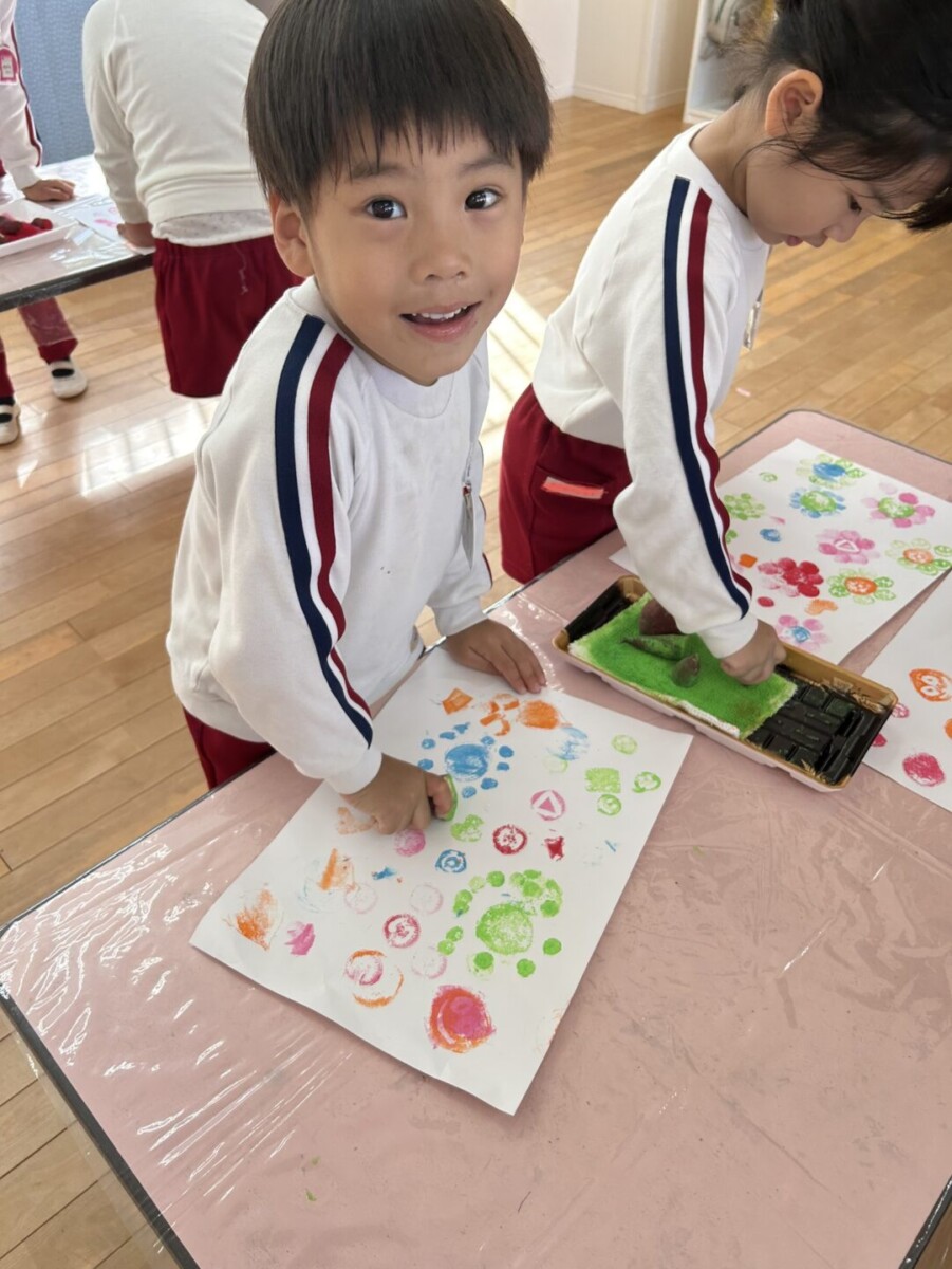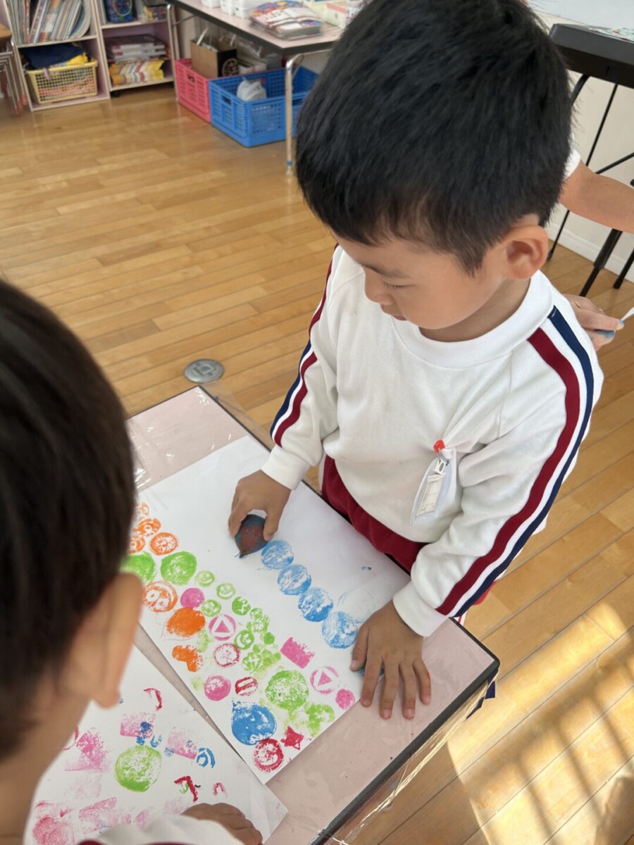 こぐま組(年長)では、掘ったお芋で芋スタンプを楽しみました♪