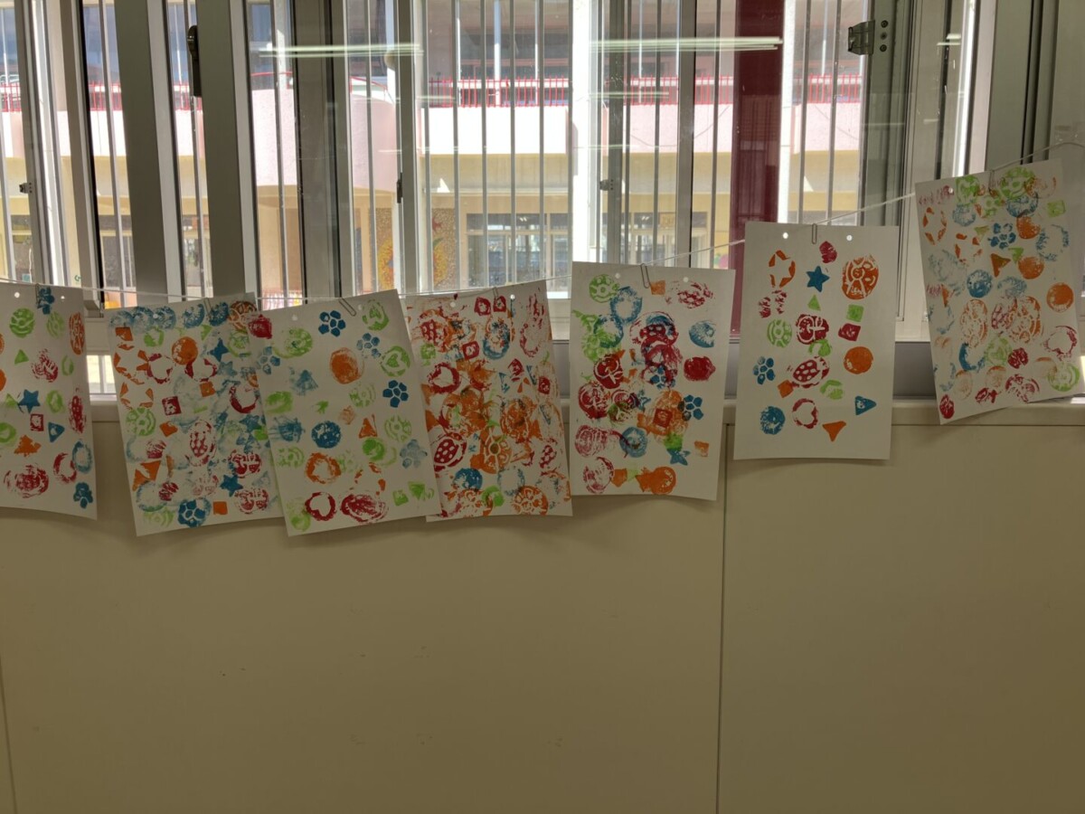 教室に飾ったら「ぼくのはこれかな?」「わたしのどれー?」と、お友だちのスタンプと見比べながら眺めていましたよ😄