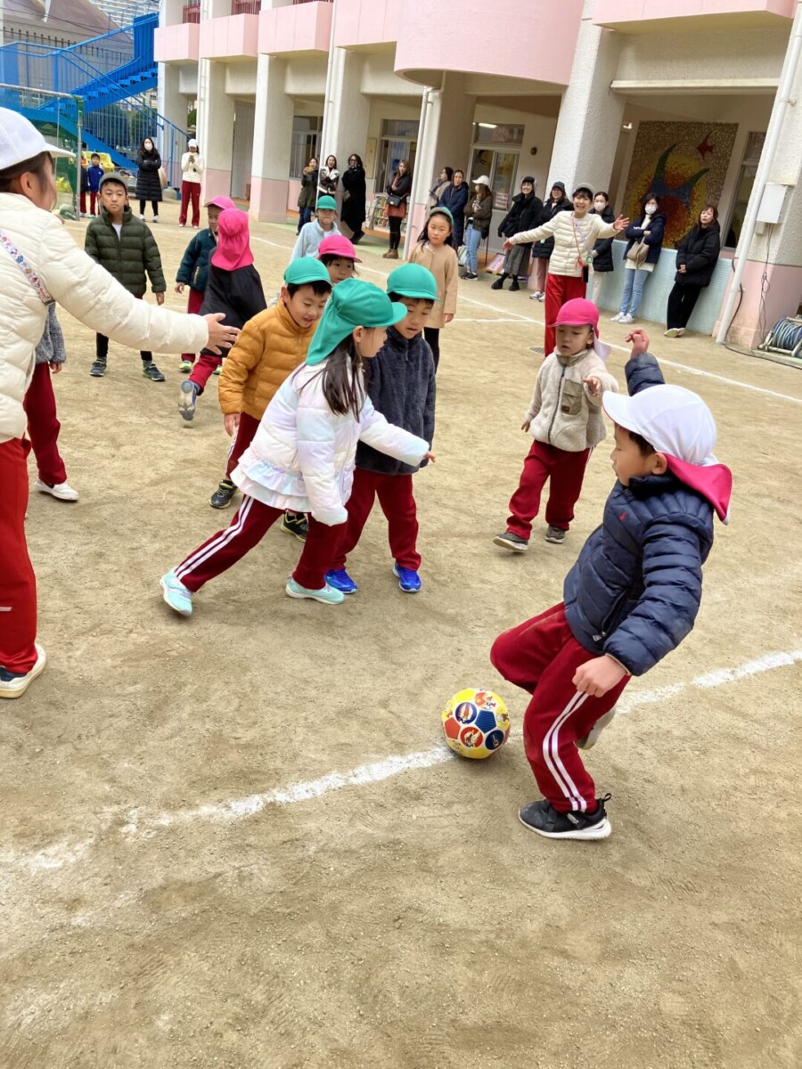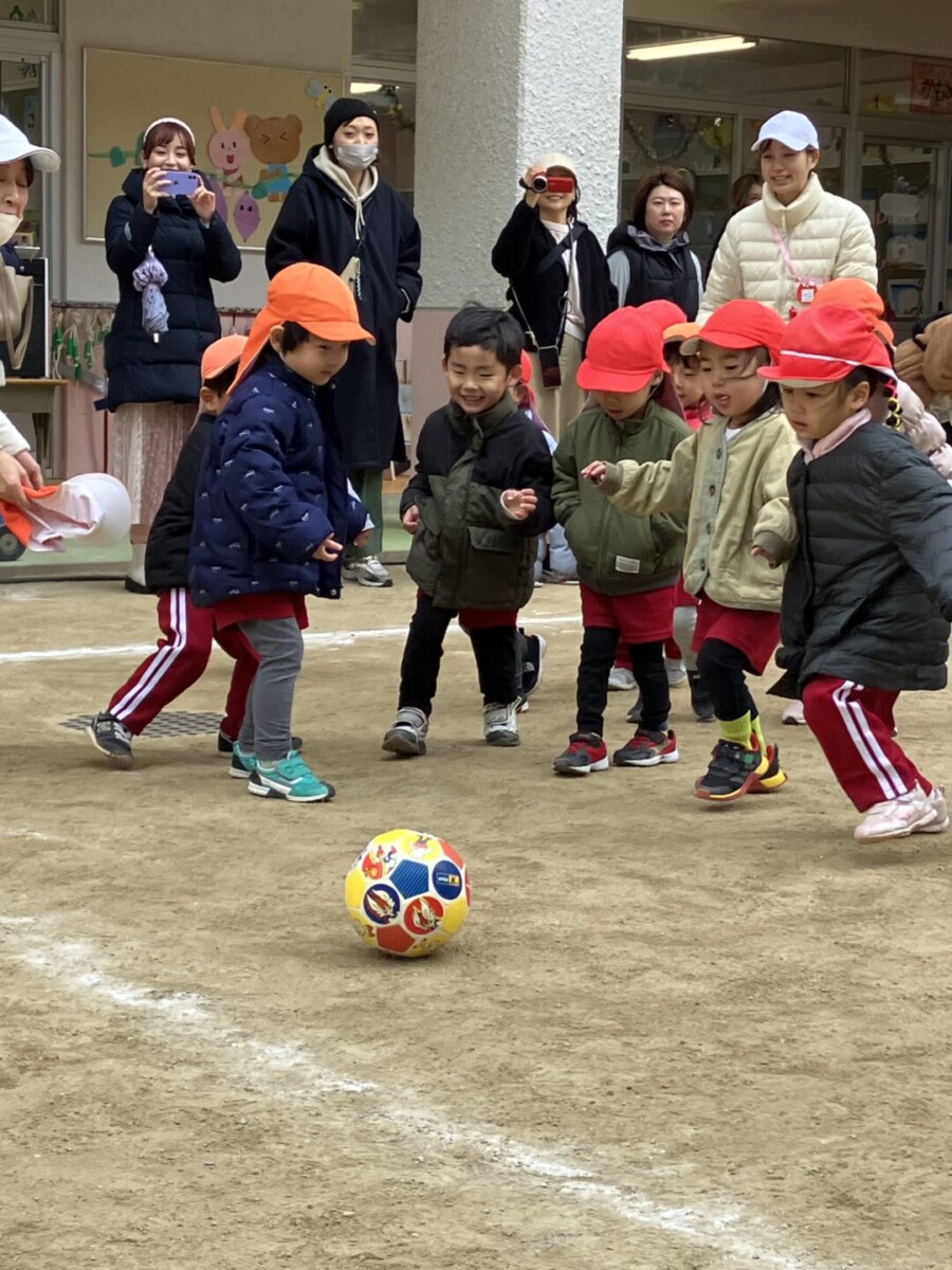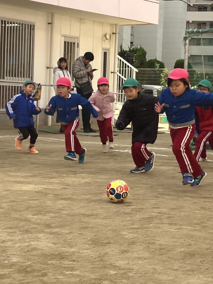 ふくはま幼稚園では、寒さに負けず元気いっぱいサッカー大会が行われました。