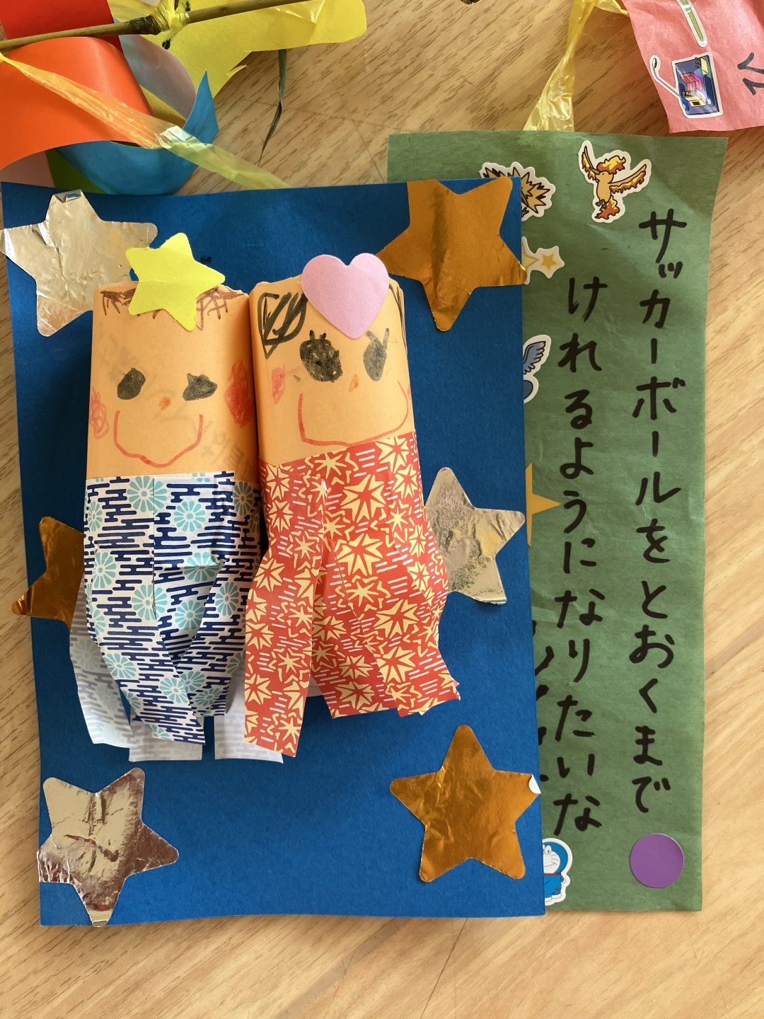 この日に持ち帰る”笹飾り”も、心を込めて作りました🎋《織姫・彦星・お星さまの飾り(お名前付き)・短冊》を笹に結び付けました。