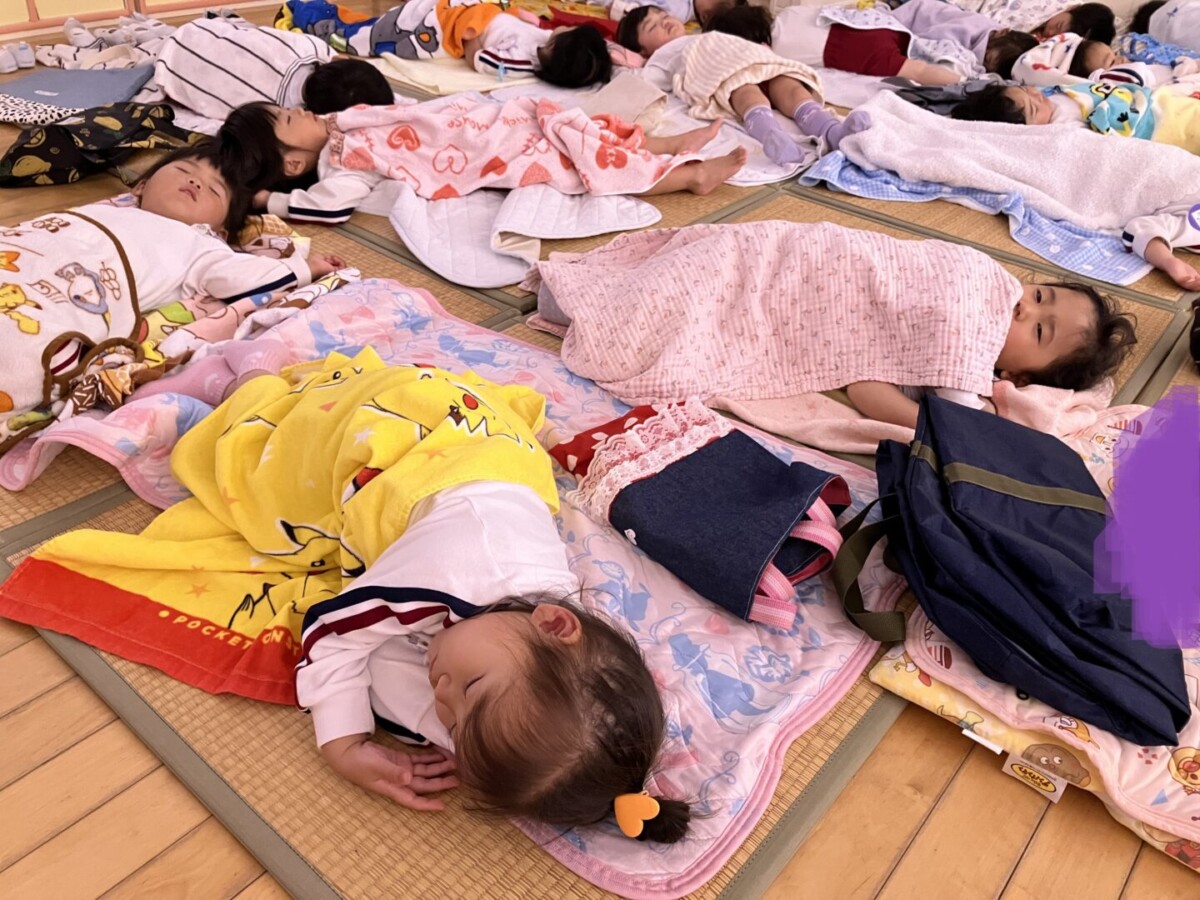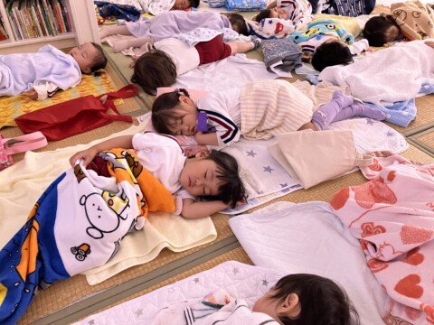 楽しく過ごして、お給食も食べたあとは・・・スヤスヤ^^ぐっすり眠るお昼寝です。30分~60分はだいたい眠れています。長いお友だちは、1時間半くらい眠ることもあります♪しっかり体を休めて、体力の回復になりますように。明日も待ってまーす!!
