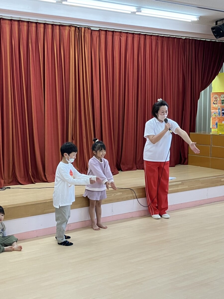 お兄さん・お姉さんの歌や踊りを見たり、まねをしたりして楽しみました!