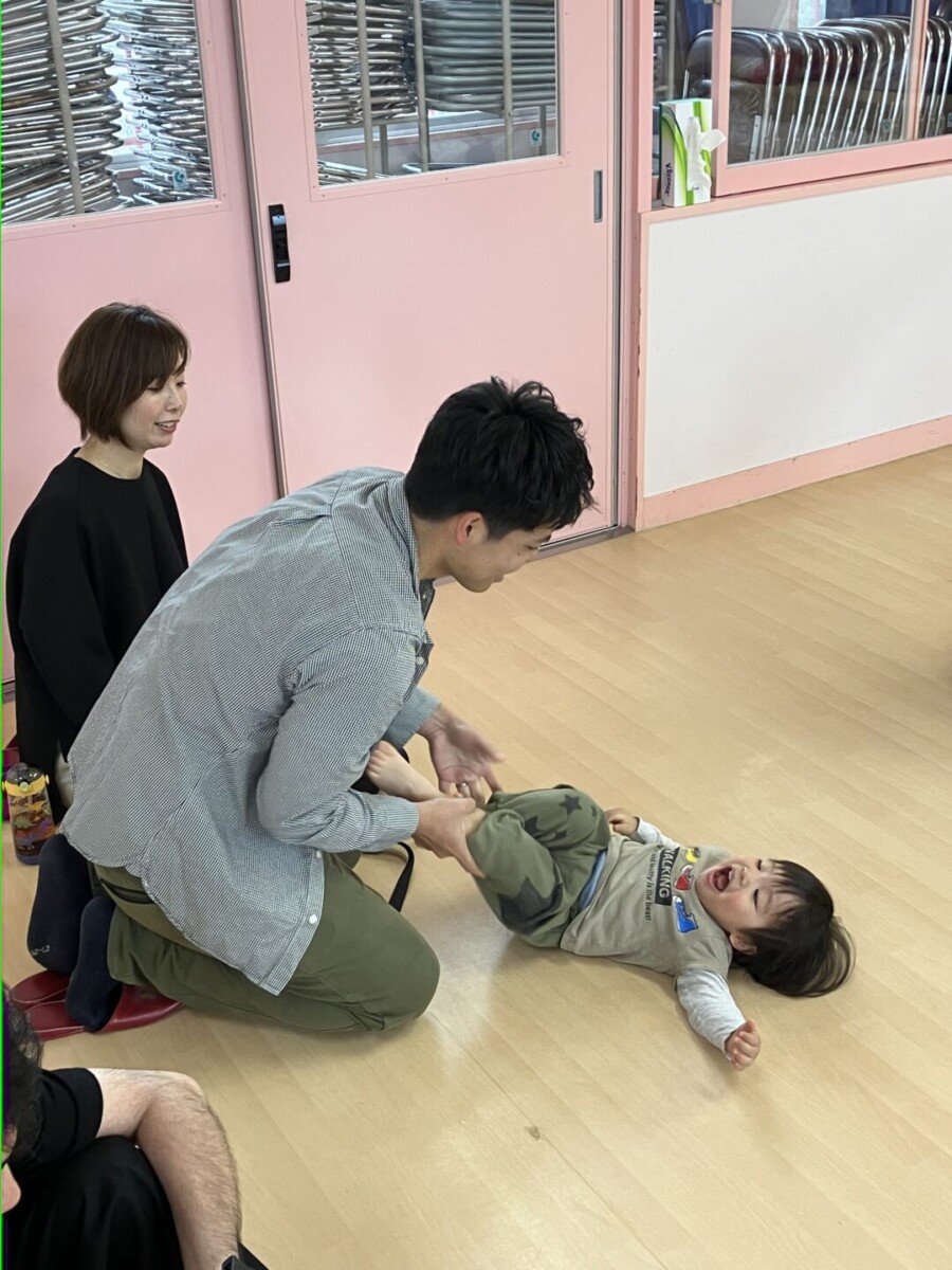 ♪ダンゴムシの歌でコチョコチョしてもらって、大喜びでしたよ!